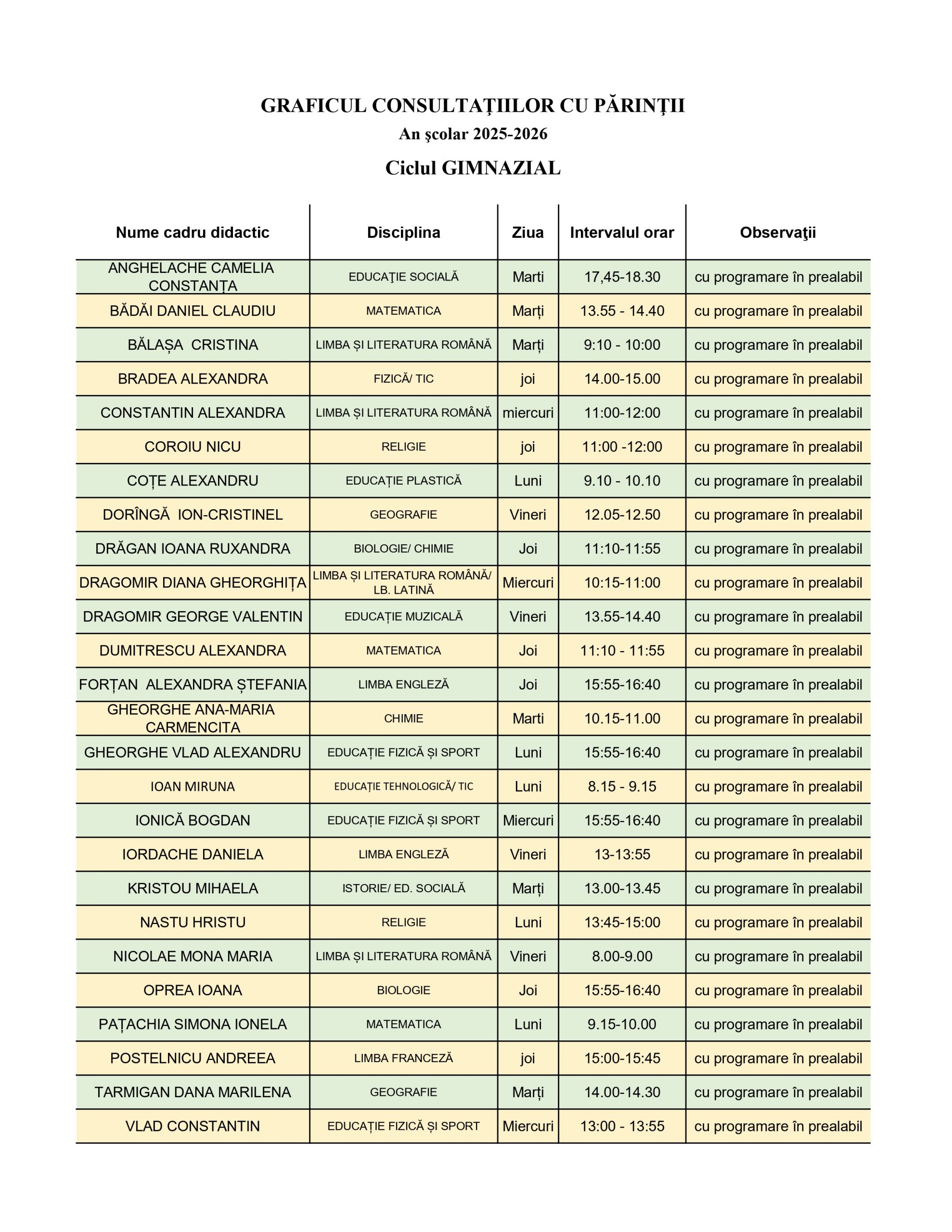 Declaraţii interese personal didactic de predare – Octombrie 2025