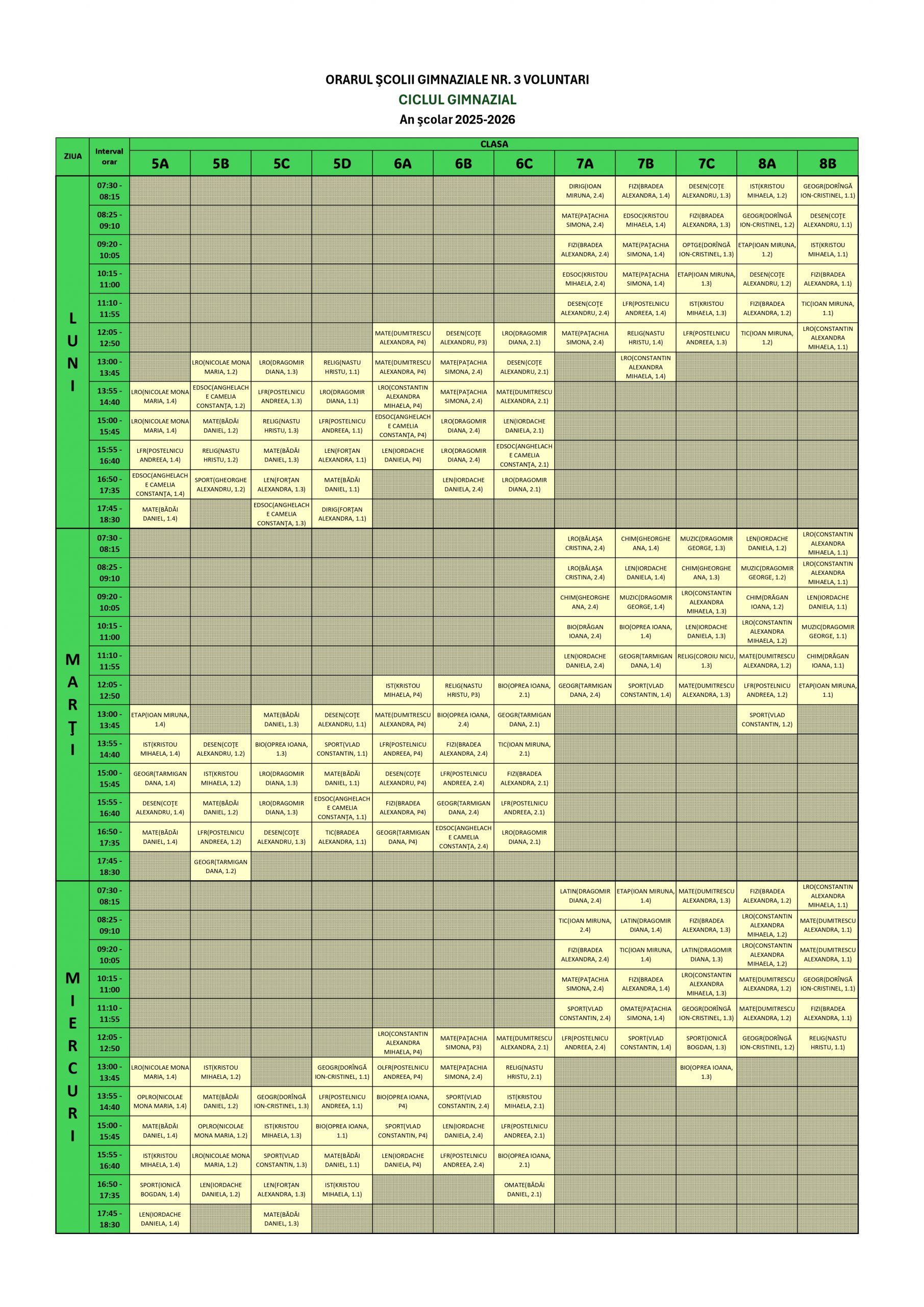 Cadre didactice 2025-2026