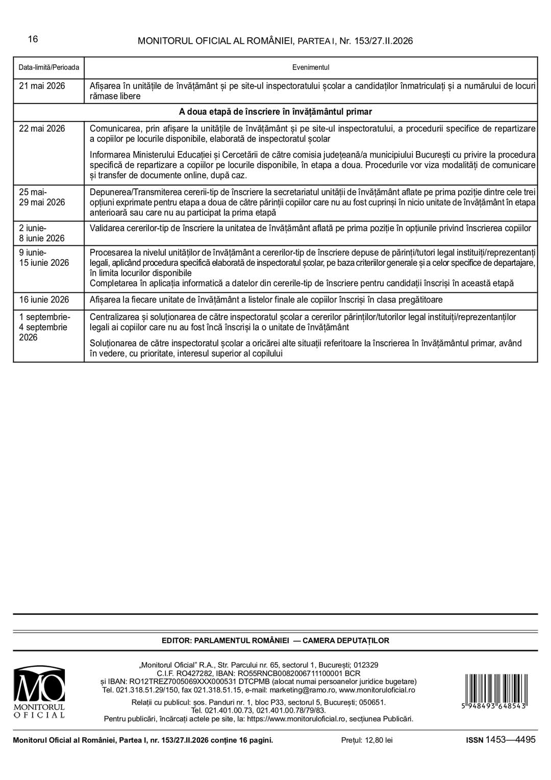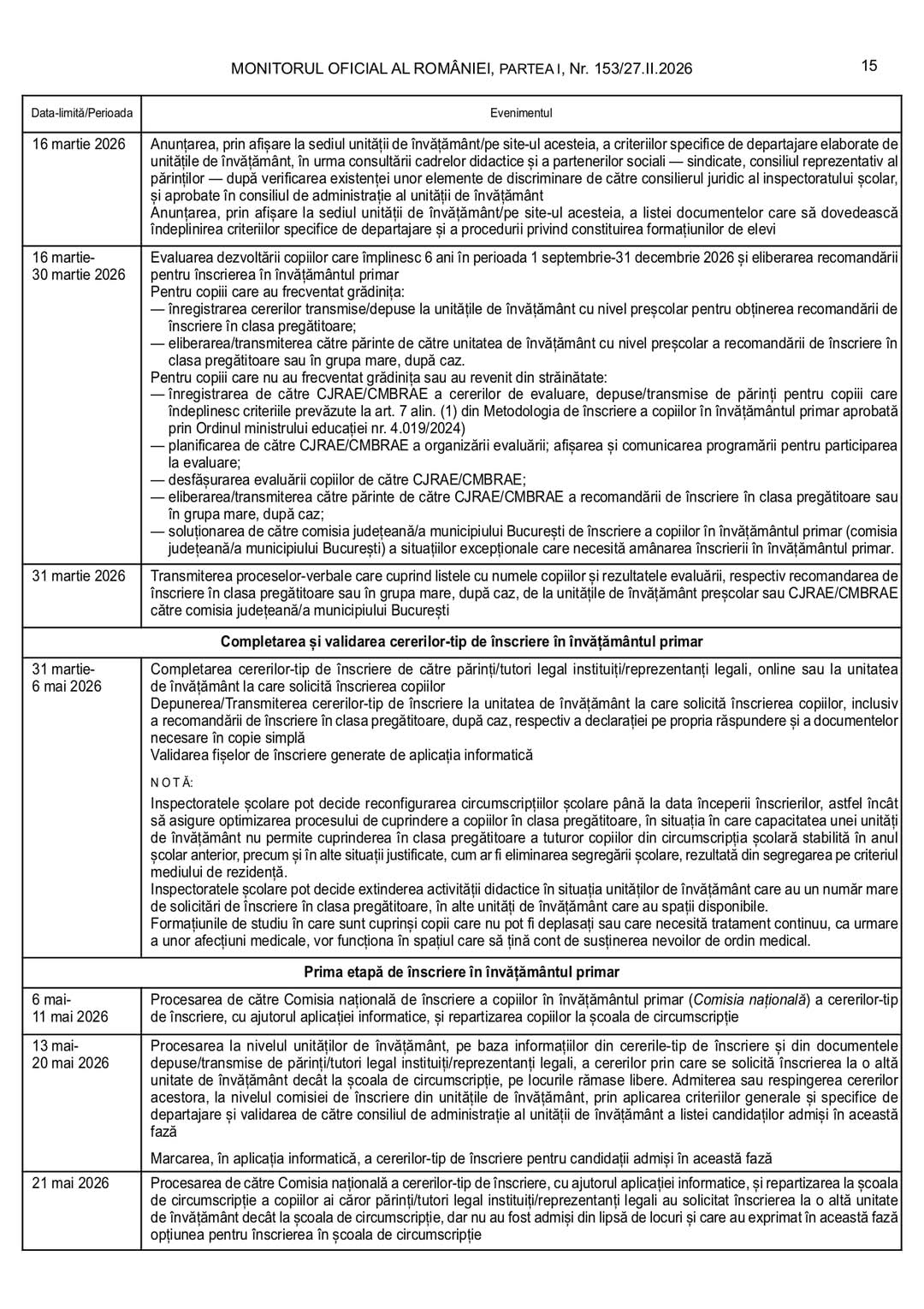 🗓️ În 12 martie fiecare unitate de învățământ va comunica pe canalele proprii circumscripțiile școlare, precum și numărul de clase pregătitoare pentru anul școlar 2026-2027.